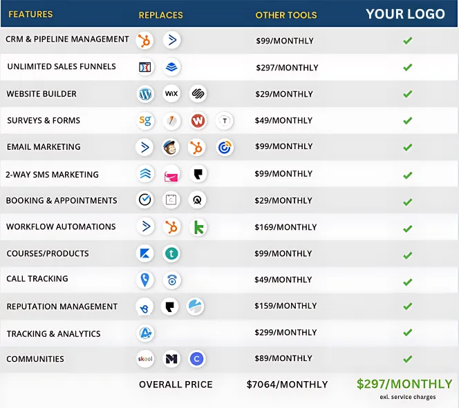 FULL ONLINE BOOKING, PIPELINES, SOCIAL CAL, WEBSITE BUILDER, AND MORE!